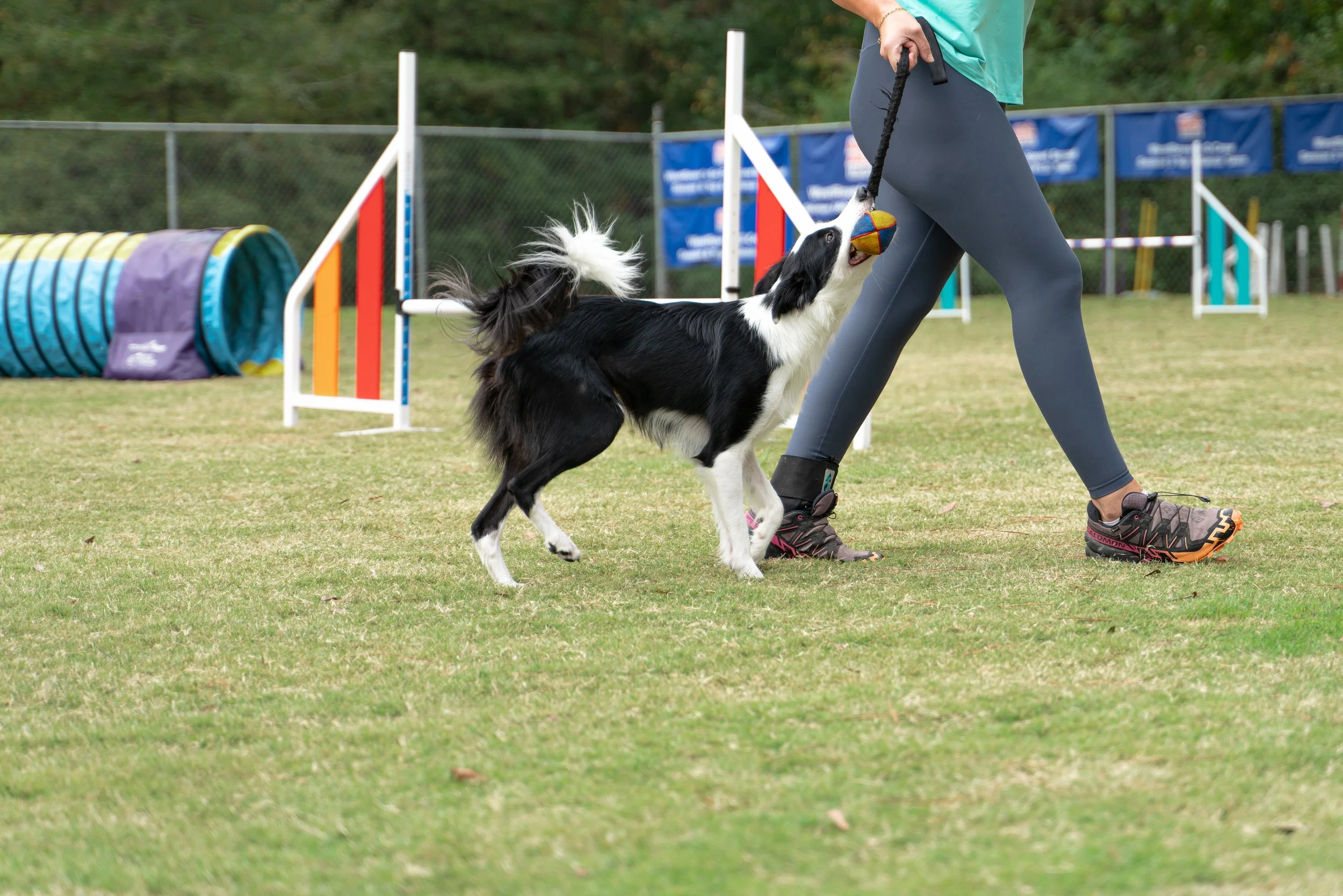Our fully equipped agility course gives dogs a place to run, jump, weave, and learn new skills in a safe, structured environment.